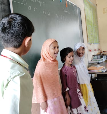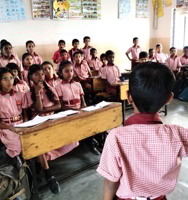Building confidence in reading English through engaging storytelling and interactive activities for children from regional language schools.