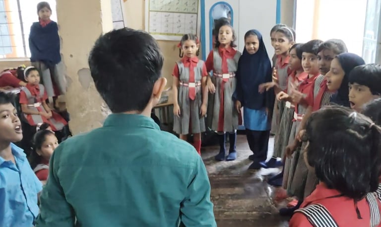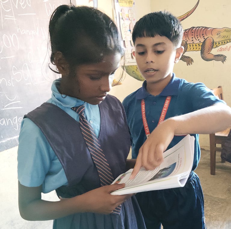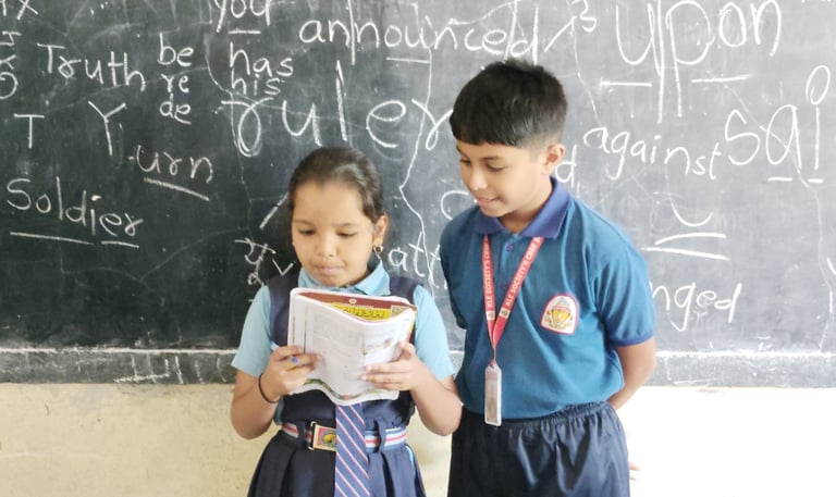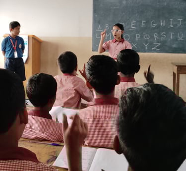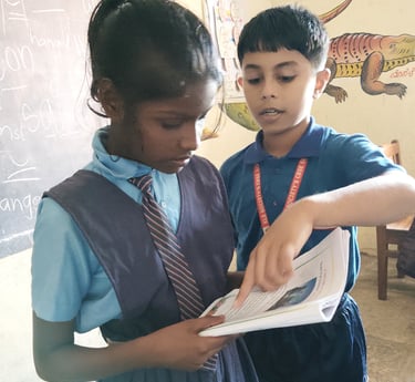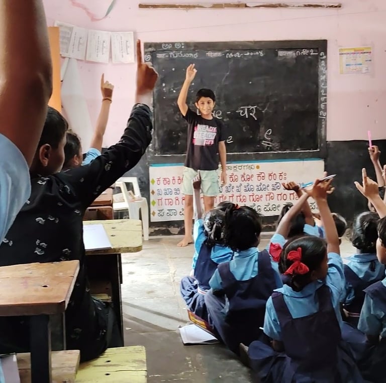 Shrinay's journey with Aksharboat began with his own love for learning English. In his early years, he enjoyed reading, practicing phonics, and storytelling. However, when he moved to his hometown, he noticed that many students in Kannada, Marathi, and Urdu-medium schools struggled with reading English. This wasn’t just a reading challenge—it was affecting their confidence, making them too shy to speak in front of others.