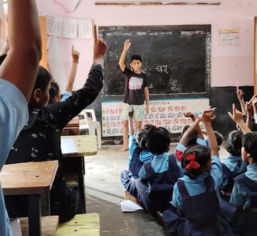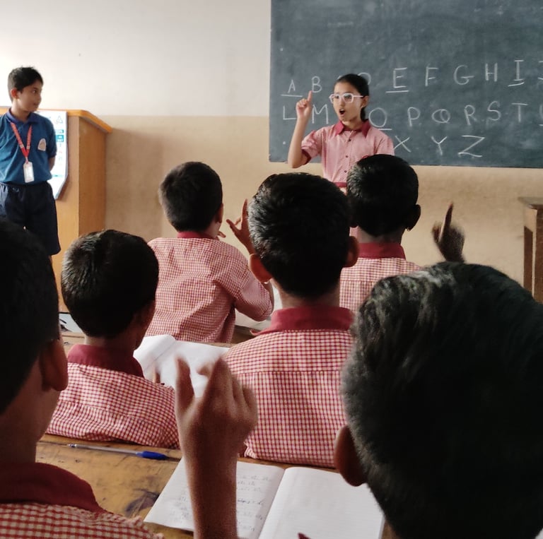Inspired by his own learning experiences, Shrinay developed fun and engaging methods to help these students. Instead of using traditional methods, he introduced Reading tricks to make English easier to understand. Interactive storytelling to encourage students to express themselves. Confidence-building activities so they could speak without fear. By making learning fun and interactive, students started gaining confidence—not just in reading, but in expressing themselves freely!